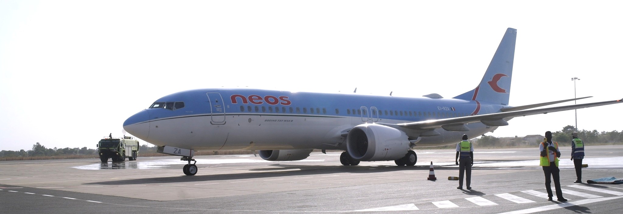 The airline was jointly received at the Banjul International Airport by senior officials from the Gambia Tourism Board, Gambia International Airlines, Gambia Civil Aviation Authority, Air Reps, Neos Gambia, and other tourism and aviation stakeholders.